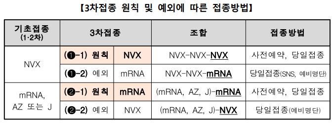 다른 백신으로 1차 또는 1·2차 기초접종을 받은 경우 노바백스 백신으로 3차 접종 받을 수 있지만 의학적 사유를 의사가 판단(예진)한 경우 접종이 가능합니다. 노바백스 백신으로 교차접종 받을 경우 의료기관 예비명단에 이름을 올려 당일 예약해야 합니다.