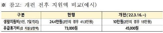 3월 16일 개편 이전에 코로나 확진 문자를 받으셨다면 이전 생활지원금 기준이 적용되어 1인 24만4000원, 2인의 경우 41만3000원이 지급됩니다.